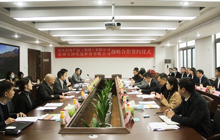 2021年12月1日上午,重慶市農(nóng)產(chǎn)品(集團)有限公司與深圳美團優(yōu)選科技有限公司隆重舉行戰(zhàn)略合作簽約儀式。
